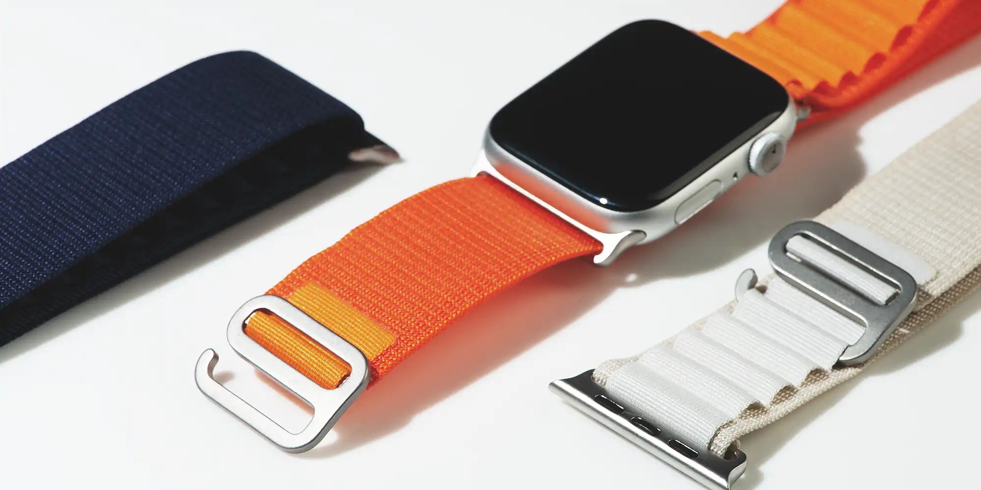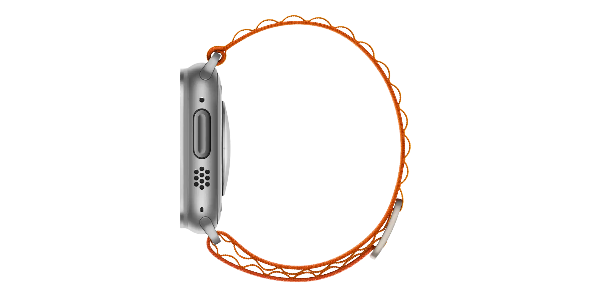 Bei Verwendung an der Apple Watch Ultra 49 mm muss der mittlere Gumminoppen beim Einführen ins Gehäuse herabgedrückt werden um eine Beschädigung zu verhindern. Andernfalls kann es zur Beeinträchtigung der Funktion und dem sicheren Halt des Armbandes an der Uhr führen.