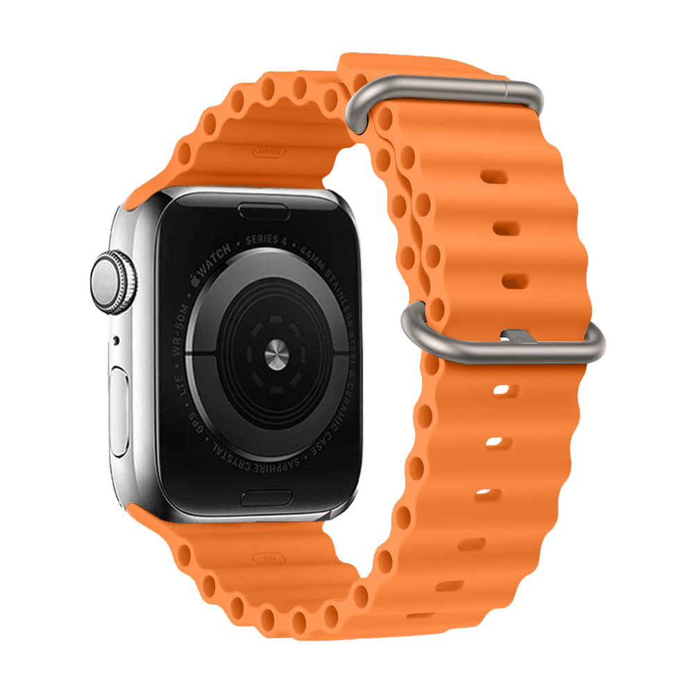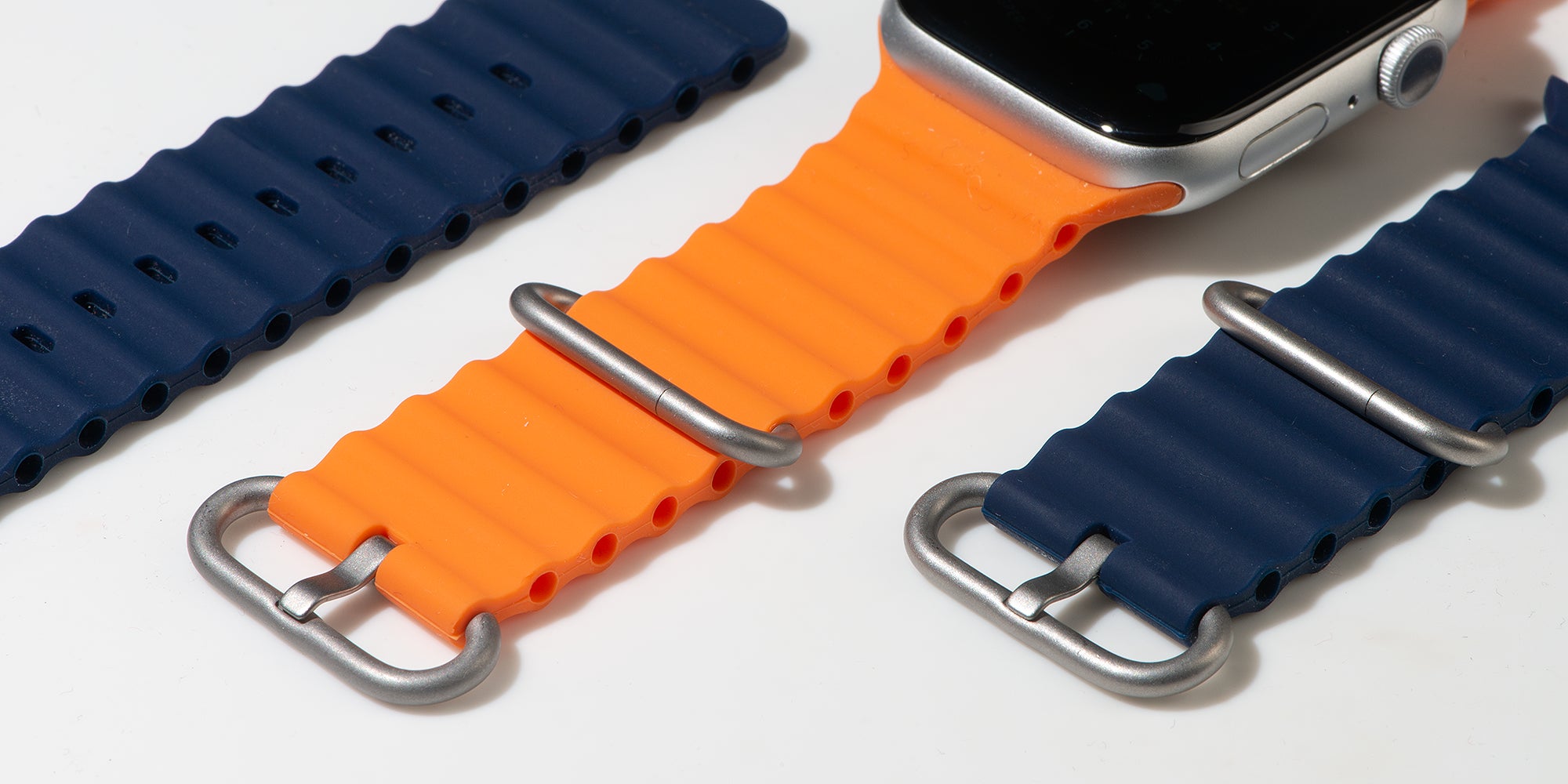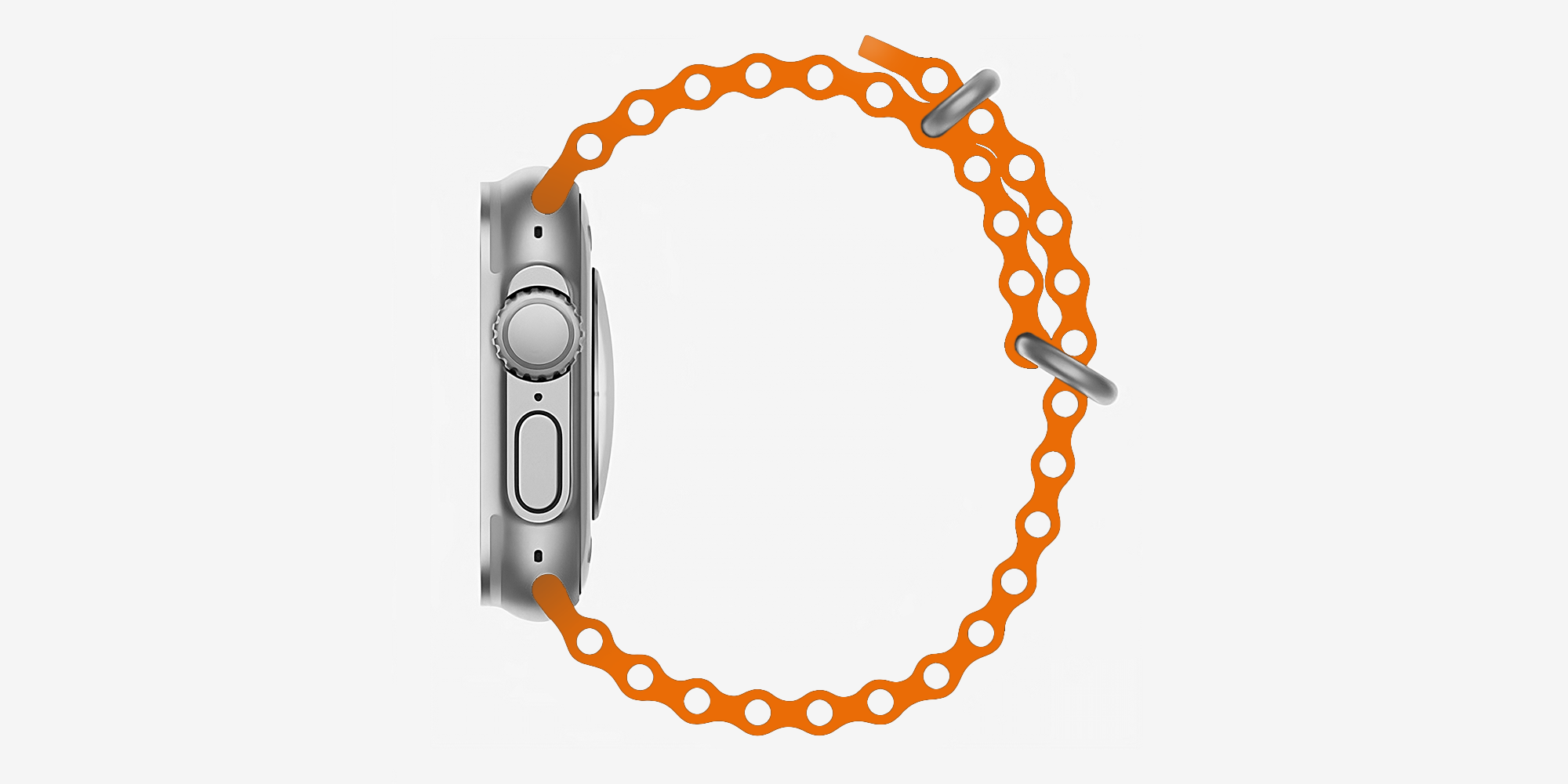 Bei Verwendung an der Apple Watch Ultra 49 mm muss der mittlere Gumminoppen beim Einführen ins Gehäuse herabgedrückt werden um eine Beschädigung zu verhindern. Andernfalls kann es zur Beeinträchtigung der Funktion und dem sicheren Halt des Armbandes an der Uhr führen.