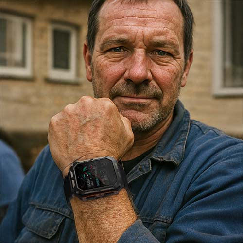Schon mal eine kaputte Smartwatch gesehen? Dann war es keine HERON. Denn die HERON Smartwatch haben wir speziell für Handwerker entwickelt die richtig arbeiten. Mit den Händen in rauher Umgebung. Du brauchst eine Smartwatch die hält. Die HERON kann was du brauchst.