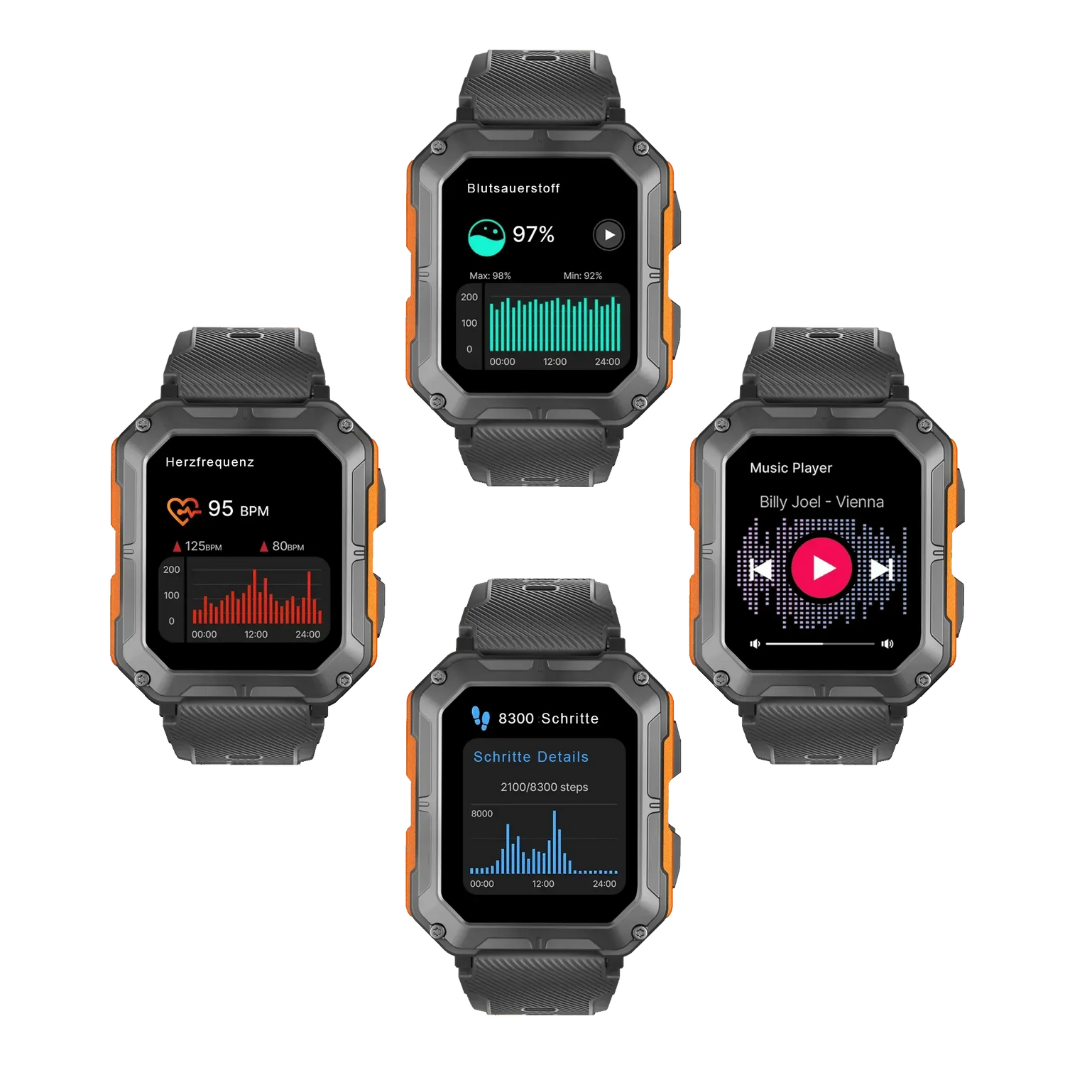 Du hast einen rauhen Alltag auf Arbeit? Kein Problem für die HERON denn diese Uhr hält das aus! Stöße, Kratzer, Staub oder Wasser. Wo andere, viel teurere Smartwatches in die Knie gehen bist du mit der HERON auf der sicheren Seite.
