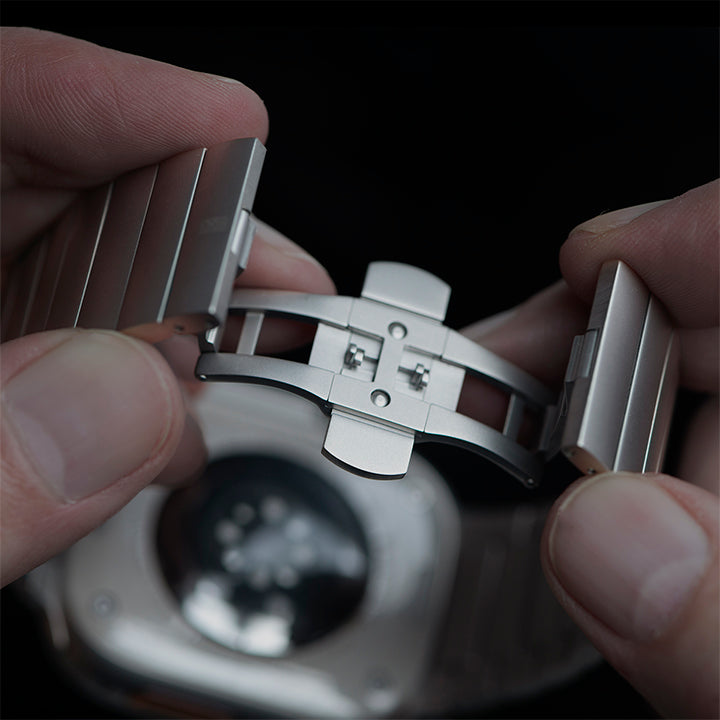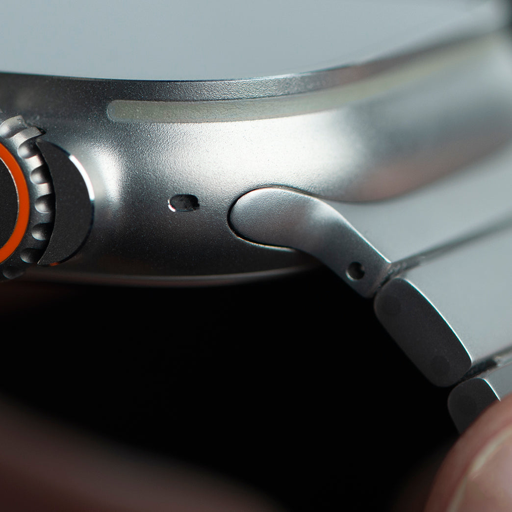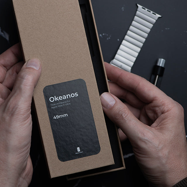 Dank präzisem CNC-Fräsen aus Vollmaterial passt der Adapter perfekt und nahtlos an dein Ultra 49 mm Gehäuse. Ein Wackeln oder lockeres Gefühl? Fehlanzeige! Du kannst sicher sein, dass dein Armband bombenfest sitzt und in perfekter Harmonie mit deiner Ultra 49 mm aussieht. Keine Kompromisse, mit dem Okeanos Titan Armband nur das Beste für dich!