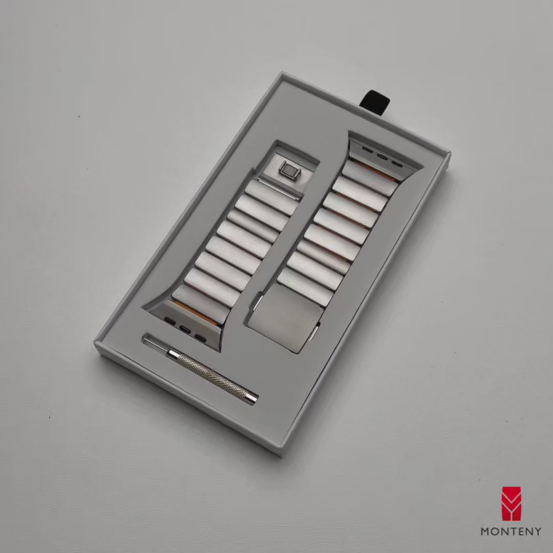 Das Armband lässt sich in 5-mm- und 10-mm-Schritten exakt an dein Handgelenk anpassen und sorgt so für eine präzise Passform unabhängig von Form oder Umfang. Die Einstellung erfolgt kinderleicht über Federstifte, die du einfach eindrückst, ganz ohne Kraftaufwand. Das passende Werkzeug ist selbstverständlich enthalten, damit das Armband von Anfang an bequem sitzt und dauerhaft komfortabel bleibt.