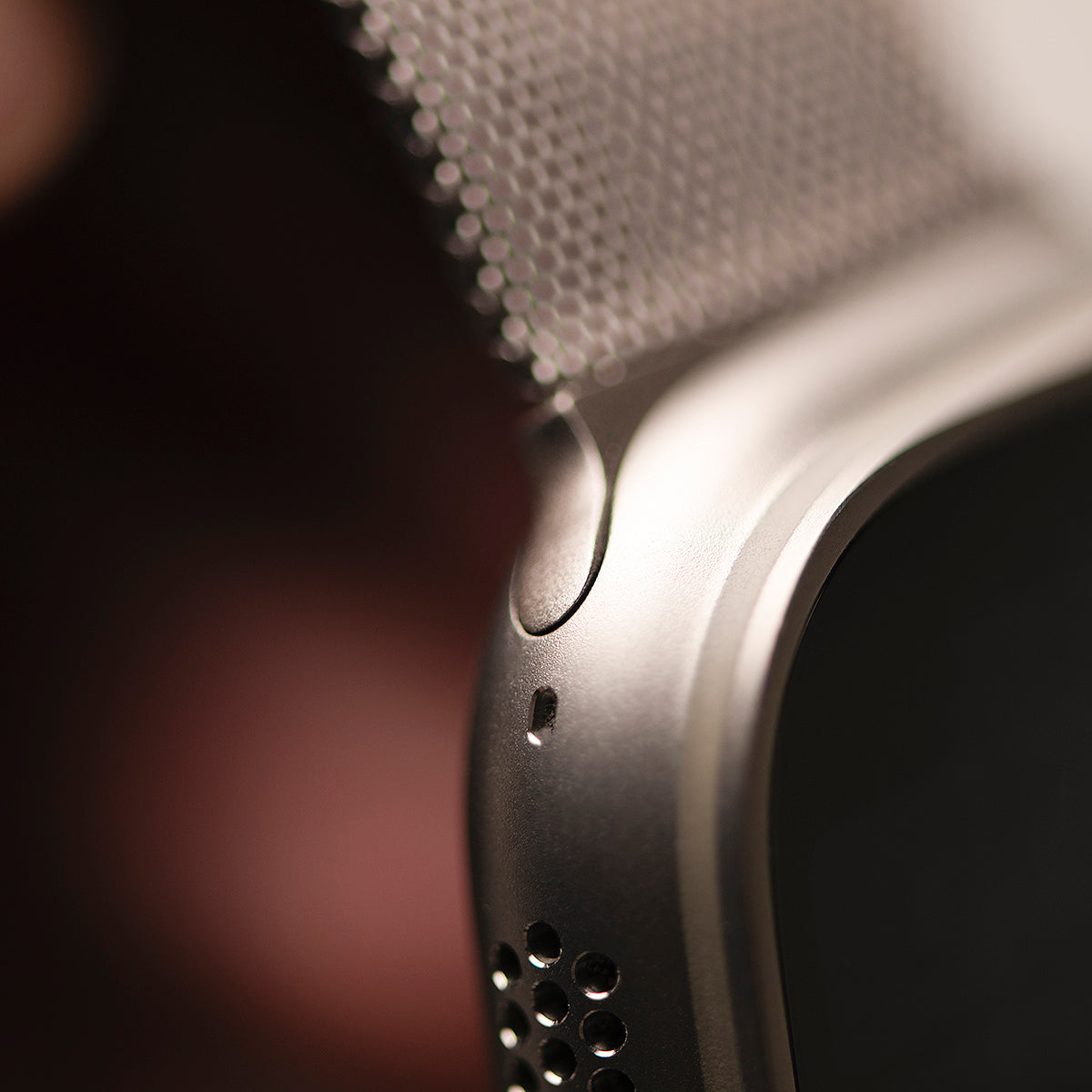 Bei Verwendung an der Apple Watch Ultra 49 mm muss der mittlere Gumminoppen beim Einführen ins Gehäuse herabgedrückt werden um eine Beschädigung zu verhindern. Andernfalls kann es zur Beeinträchtigung der Funktion und dem sicheren Halt des Armbandes an der Uhr führen.